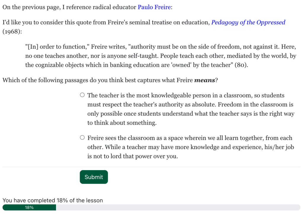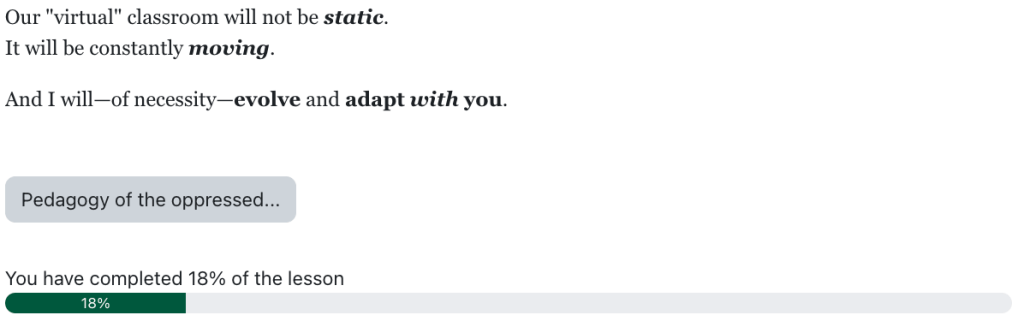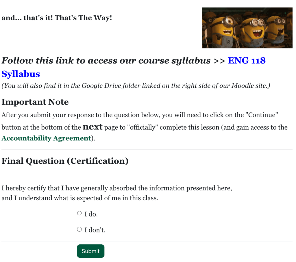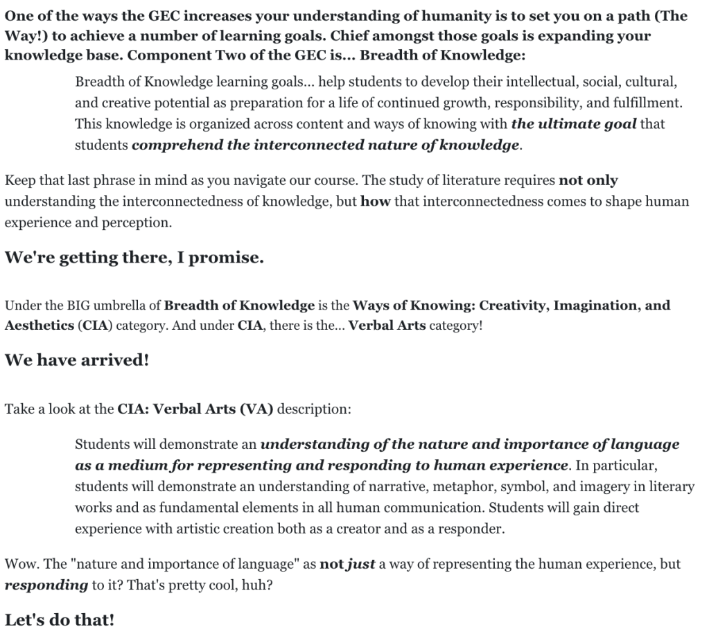 Below are some screenshots from the ENG 118 Online version of The Way. You can also watch the videos! Share this: Share on X (Opens in new window) X Share on Facebook (Opens in new window) Facebook Like Loading...